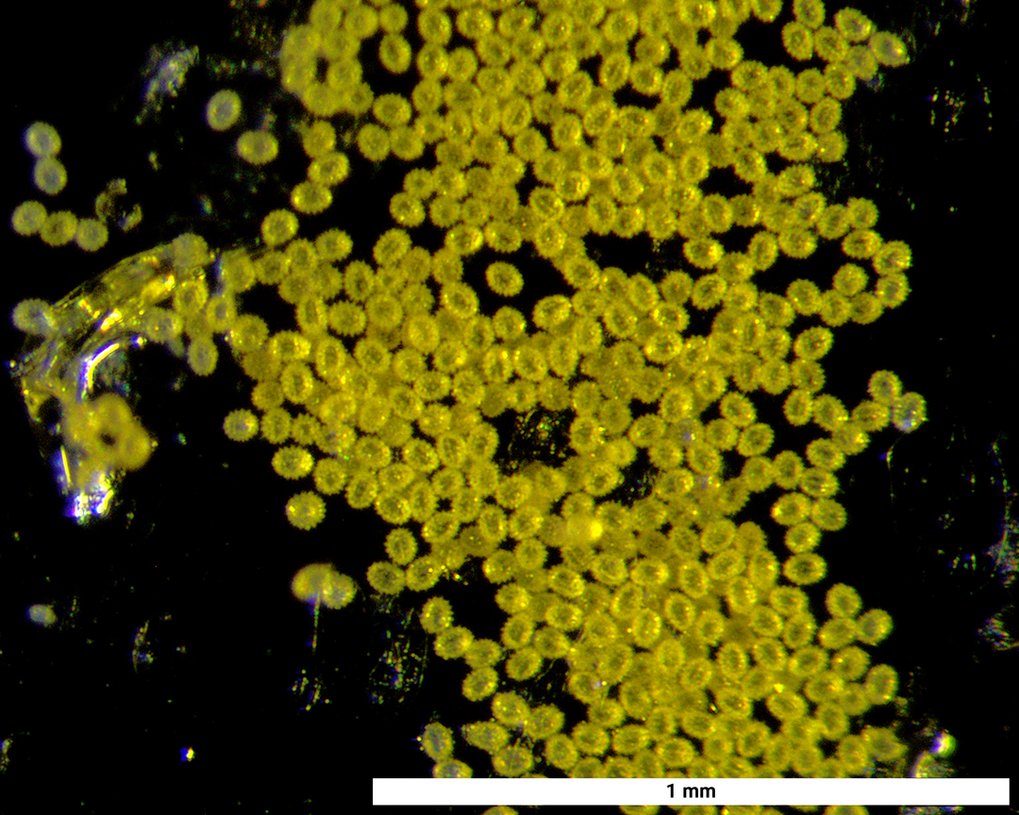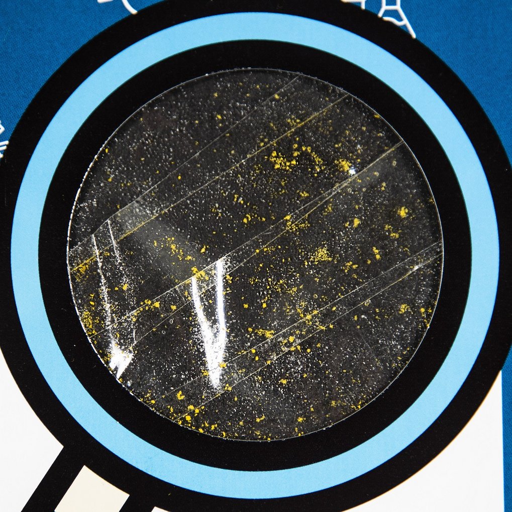 Auf diesem Forscherkärtchen siehst du die Pollen von Sonnenblumen. In der Bildergalerie findest du weitere Aufnahmen. Du siehst Aufnahmen, die wir mit dem Handy gemacht haben, einmal mit der kompletten Karte und einmal ganz nah. Im Vergleich dazu siehst du die gleiche Forscherkarte nochmal, die wir durch unser hochempfindliches Lichtmikroskop betrachtet haben. Um alles gut sehen zu können, klicke am besten auf das Kreuzchen unten rechts im Bild - dann öffnet sich eine größere Ansicht des Bildes und die dazu passende Erklärung!